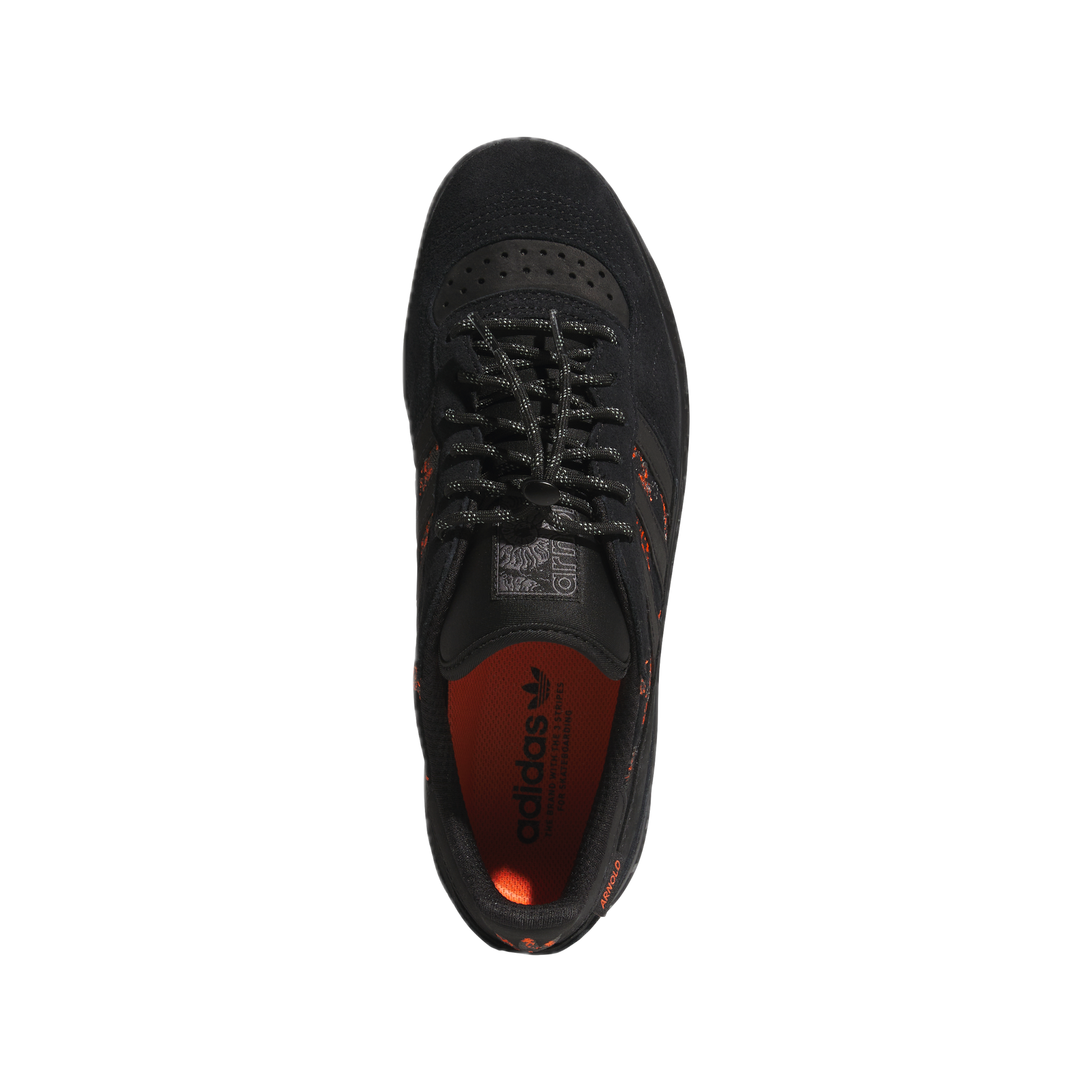 The Handball Top x Mike Arnold Shoes are designed in collaboration with the adidas skateboarding pro, Mike Arnold. This second iteration of the Handball Top takes inspiration from the visual cues of speed and friction. The upper is crafted from suede and nubuck, while the rubber stripes sit atop an embroidered suede that alludes to the concept of speed Mike envisioned. Featuring colours and patterns intended to portray sparks, smoke and exhaust, this Handball version offers a fresh take on the vintage design and skateboarding performance.