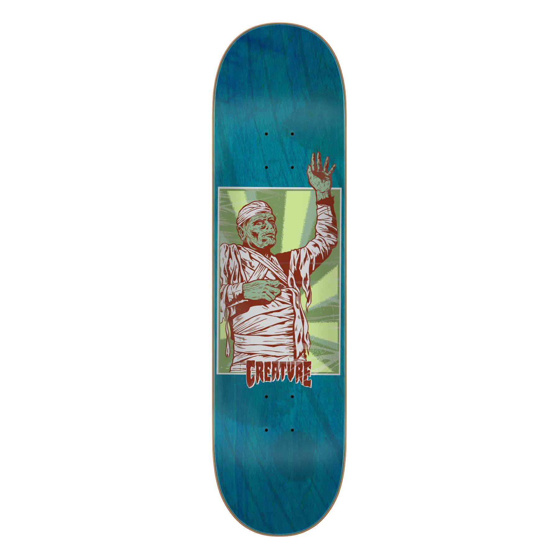 After 20 years since Creature's resurrection, this Relic dragged from the Creature Tombs will chill you to the bone. Behold! The iconic Mummy graphic from Creature Past is back from the dead! Now offered on our classic 8.25 x 32.04 shape with 14.353 wheelbase.