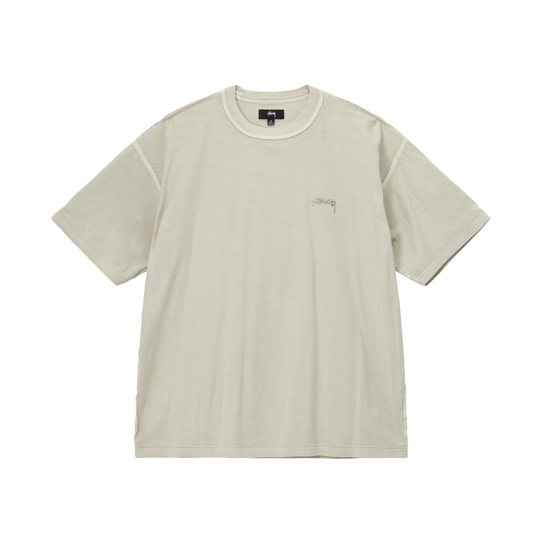 Relaxed fit, pigment dyed inside-out stitch T-shirt.